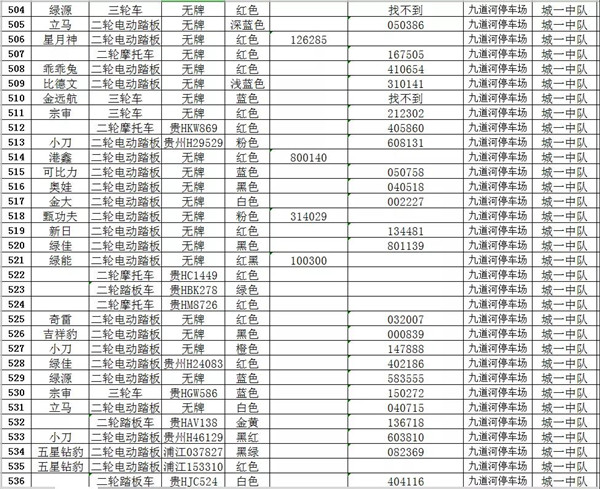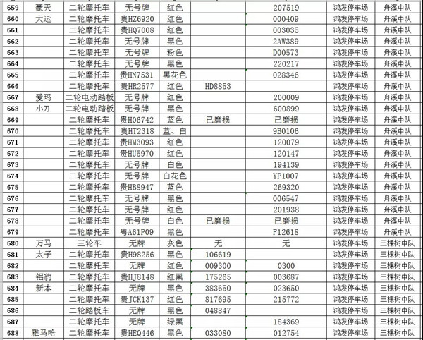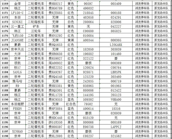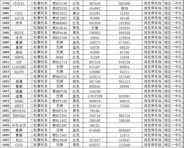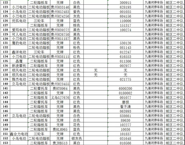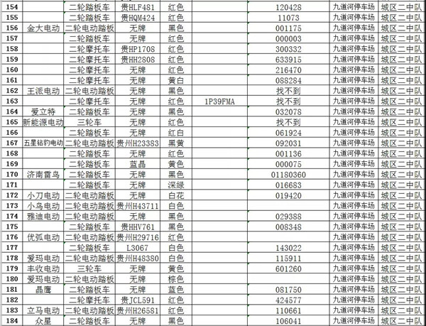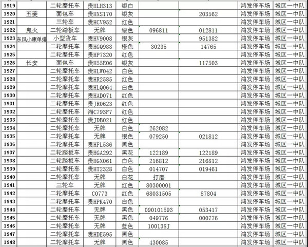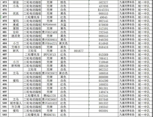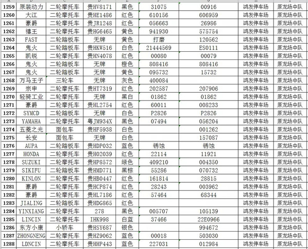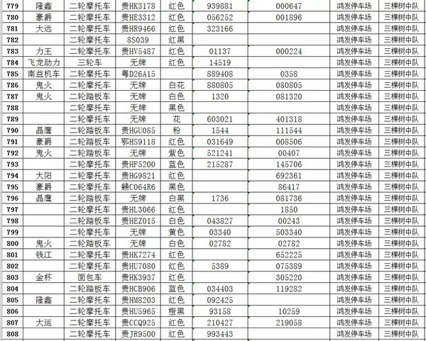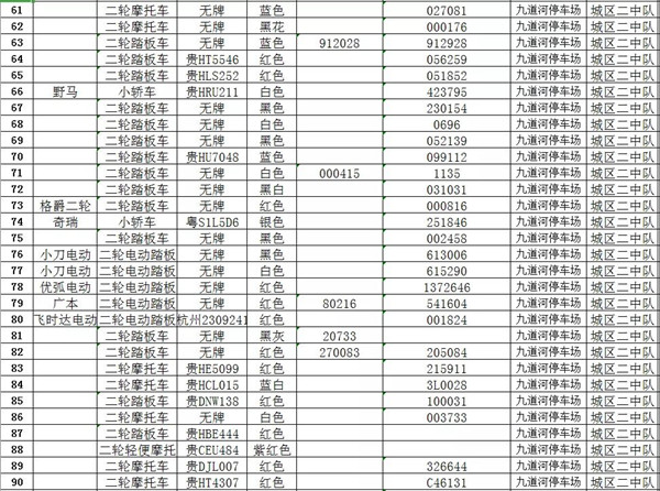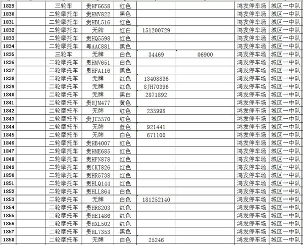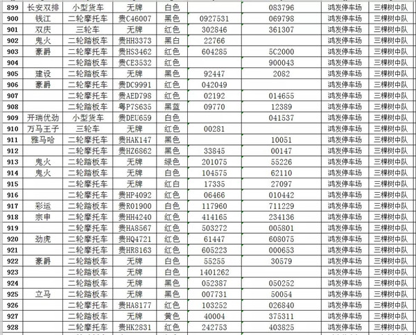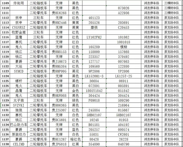 凱里市公安局交通警察大隊扣留車輛報廢清單