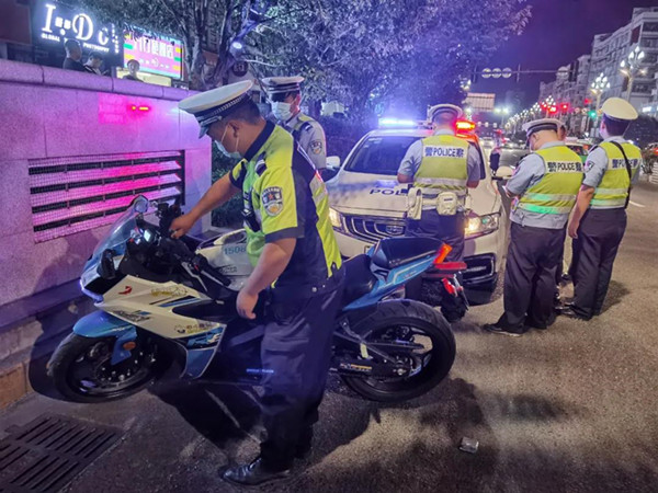 行動中,大隊根據轄區摩托車通行時段和路段等規律,在“響管”摩托車高頻出現的北京西路、寧波路、風情大道等路段,采取定點檢查、流動巡邏、攔截圍堵等方式開展整治,以摩托車超速飆車、無牌無證、酒后駕駛、超員、私自改裝等違法行為為整治重點,對違法行為形成嚴查、嚴管、嚴打的高壓態勢。