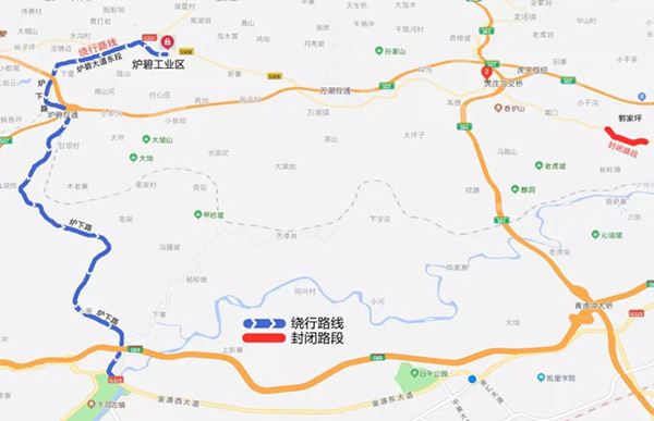 1、公交車以及沿途居民的小型車輛等確有通行需求的,允許途經(jīng)郭家坪村至中國航油加油站的便道繞行。該繞行路線禁止其它社會車輛及大型車輛繞行。