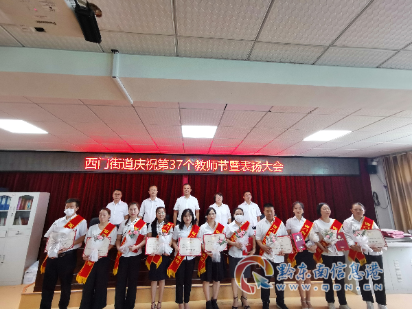 本網訊 為進一步增強廣大教師和教育工作者教書育人的榮譽感和責任感,弘揚尊師重教的良好風尚。2021年9月9日上午,西門街道慶祝第37個教師節暨表揚大會順利召開。街道黨政班子成員、各中小學校長、幼兒園園長、獲獎單位負責人、受表彰教師和尊師重教先進個人等80余人參加會議。