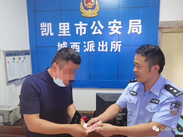 果不其然,接到派出打來的電話,崔先生激動不已,他告訴民警還以為這個錢肯定找不到了。最后,在凱里市公安局城西派出所,崔先生從民警手中接到失而復(fù)得的現(xiàn)金后,激動地說:“謝謝人民警察,謝謝!”次日,便制作了一面印有“心系百姓辦實事、為民服務(wù)暖人心”字樣的錦旗送給當(dāng)天的值班民警。