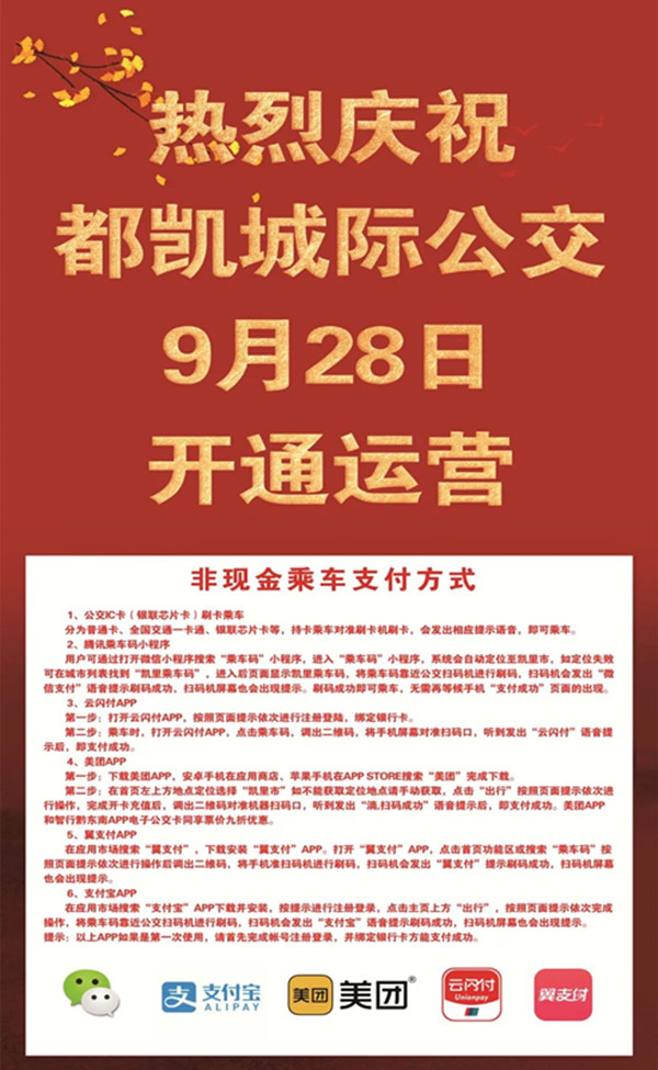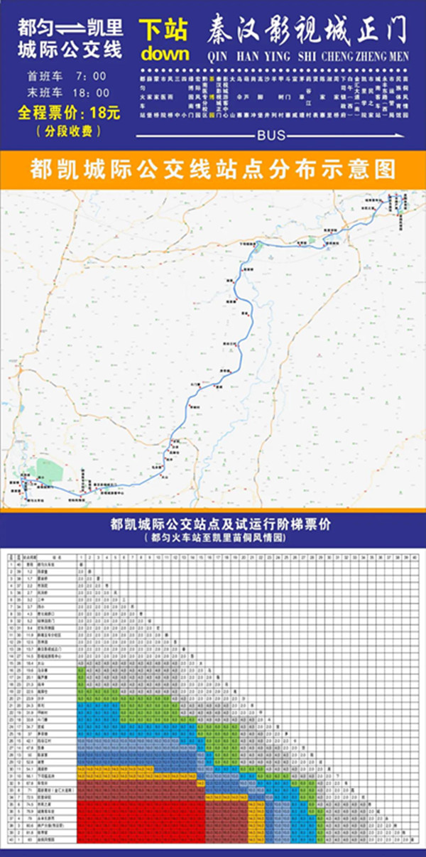 都凱城際公交屬于跨區域城際公交線路,在為方便廣大群眾乘車出行的同時也切實的做好便民惠民,在運行票價上擬采取階梯票價、分段計費的模式進行乘車收費,并且與對發車輛企業進行有效對接,確保雙方統一票價,實行階梯收費,原則以全程通票不得高于18元逐站核算制定,列入經營許可方案經批準后公示執行,并在車輛的醒目位置張貼票價。
