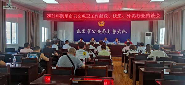 為加強對郵政、快遞、外賣及服務民生從業(yè)人員規(guī)范行車的管理,進一步提高我市郵政、快遞、外賣等民生企業(yè)安全、文明行車交通安全意識,助推凱里市鞏固全國文明城市、全國衛(wèi)生城市工作有效開展。2021年9月27日上午,凱里市公安局交警大隊組織郵政、美團、餓了么、肯德基、極兔、康利、順豐快遞、百世快遞、圓通快遞、蘇寧物流、達達快遞、申通快遞、中石化燃氣、常樂燃氣、四維燃氣、興家樂燃氣、黔之源、城際達、凱里東駿等企業(yè)負責人在交警大隊七樓會議室進行約談。