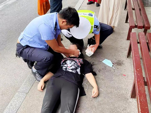 10月7日早上8點,凱里市公安局交警大隊三名輔警正準備去路面執(zhí)勤,這時一名男子著急向他們走來,說在交警大隊公交站臺有一名女子暈倒了,請求幫助。