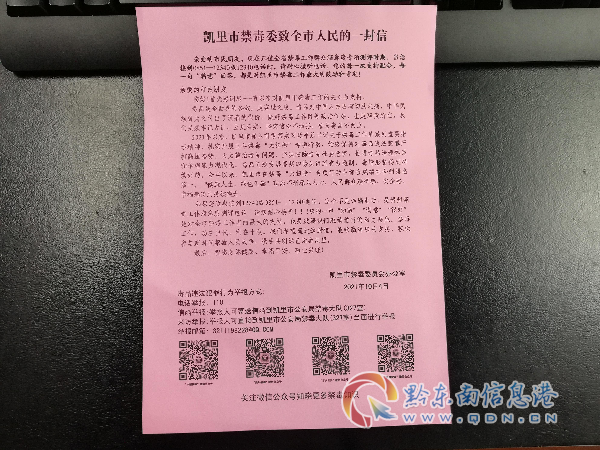 為進一步夯實禁毒宣傳教育主陣地,一是將市禁毒辦在“凱里禁毒在線”微信公眾號發布《凱里市禁毒委致全市人民的一封信》轉發至每名職工和管理服務對象,要求全體干部關注“中國禁毒、貴州禁毒、苗鄉侗寨禁毒在線、凱里禁毒在線”微信公眾號;二是每天安排工作人員對轄區沿街門面、居民小區入戶發放《凱里市禁毒委致全市人民的一封信》,助力禁毒工作群眾滿意度、知曉率雙提升。