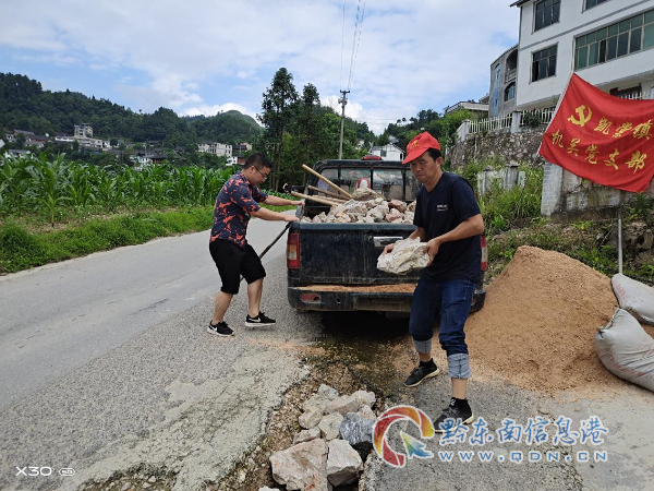 鎮黨委書記顧軍先帶領黨員干部修補破損路面