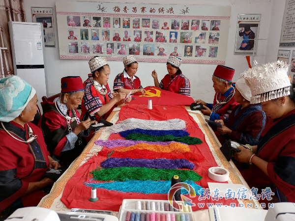 通過合作社實現效益分紅和就業的繡娘們在繡黨旗感恩黨
