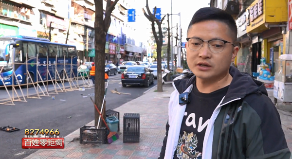 凱里市市政設施管理處處長 劉 睿:“從州建公司菜市場出來的這個位置,往前走,右轉接北京東路,總共是165米。路拓寬是3米,從現在盲道的這個位置,紅色這個小花板到道牙的位置,全部恢復成車行道,對面就從人行道的位置,接到黔東南州日報社退回來,現在有行道樹的那個位置,總共是55米。把這一節的行道樹全都取消掉,包括人行道要取一半,然后留下拓寬成三米的車道,以后就可以緩解文化南路車輛擁堵的問題。”