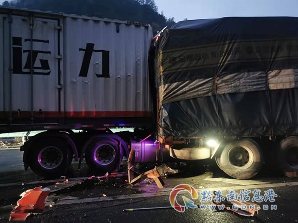 據前車駕駛員介紹,該車運輸貨物為30噸閃光蕾沖天炮,由湖南省醴陵市開往貴州省安順市普定縣,行駛至G60滬昆高速凱麻段K1708+200上行時感覺車輛狀況不佳,于是將車停靠在G60滬昆高速與凱里環北高速互通入口的白實線路段,下車查看情況,不到一分鐘,后方駛來的貨車避讓不及,發生了追尾。