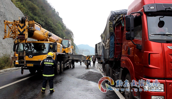9時30分,轉運車輛到達事故現場,經過1個多小時的轉運,30噸煙花爆竹被安全轉運至麻江縣某煙花爆竹存放倉庫。10時45分,“一路多方”開始對事故車輛進行緊急施救,經過兩個小時的努力,成功將事故車輛拖離現場。