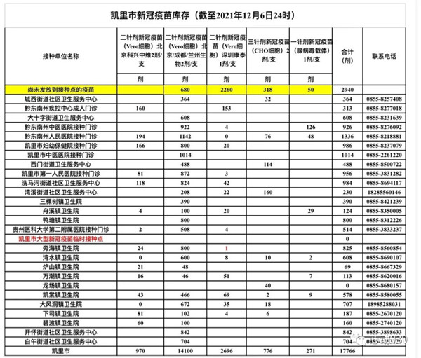 凱里新冠疫苗“加強針”的庫存