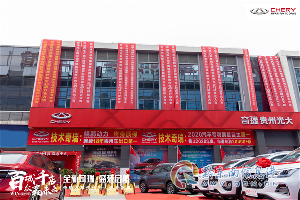 在奇瑞汽車貴州光大4S店開業之際,所有蒞臨展廳的用戶,均可鑒賞奇瑞全系經典車型、品味“技術奇瑞”的匠心智造、駕享奇瑞車型的品質風范。同時,奇瑞汽車貴州光大4S店展廳還開展全系車型特惠活動,消費者不僅可以享受大幅讓利,還可同時享受奇瑞汽車提供的各項購車金融服務。