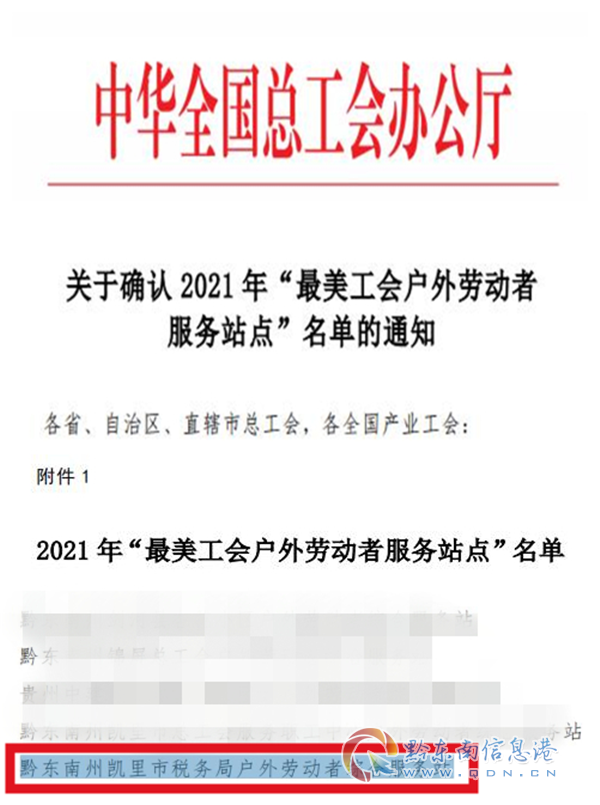 下一步,凱里市稅務局將切實發揮“最美工會戶外勞動者服務站點”的引領示范作用,鼓勵推樹站點繼續創新工作方式方法,拓展整合站點服務功能和手段,提高服務職工精準化水平,做實做細做優站點品牌。同時,還將一如既往積極承擔社會責任,加大戶外勞動者綜合服務站的宣傳力度,持續完善基本設施,提升服務水平,為廣大勞動者及納稅人、繳費人提供更優質的服務、更舒適的環境,讓戶外勞動者綜合服務站真正成為溫馨的港灣、愛心的驛站,持續推動工會戶外勞動者服務站點工作取得更大成效。(楊文)