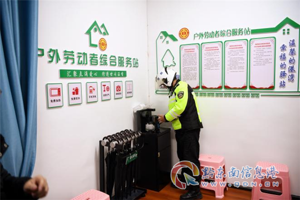 據該局相關工作人員介紹,建設戶外勞動者服務站,是凱里市總工會、市稅務局關心愛護廣大勞動者特別是戶外勞動者的具體體現,讓戶外勞動者可以歇歇腳、充充電是建立戶外勞動者綜合服務站的關鍵所在。服務站內各項設施嚴格按照省級示范點標準打造,配備了微波爐、飲水機、沙發、電暖桌、冰箱、雨傘、無線網絡、工具箱、衛生間等設施。管理規定和辦法上墻,明確專人負責日常管理維護,既保障了戶外勞動者“冷可取暖、熱可納涼、渴可飲水、累可歇腳、飯涼可熱、急可如廁”的生活需要,也幫助戶外勞動者解決了長期面臨的各種現實問題。據了解,自2020年10月建成啟用以來,先后被評為省級、州級“戶外勞動者服務站示范點”稱號,累計服務各類人群3000余人次。