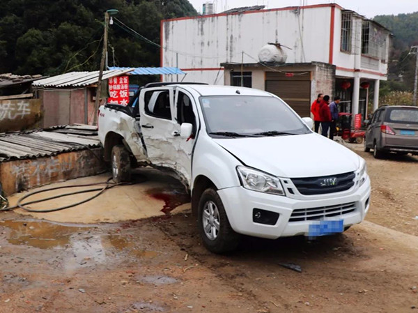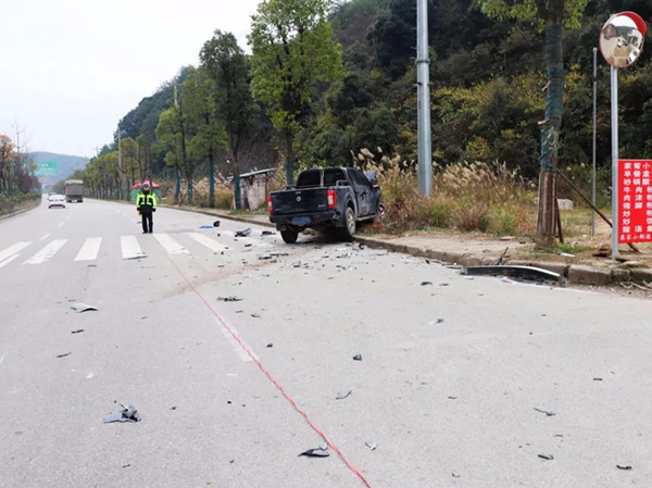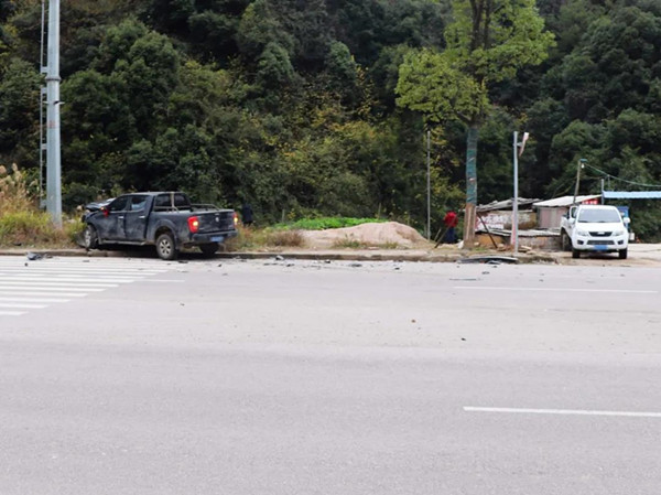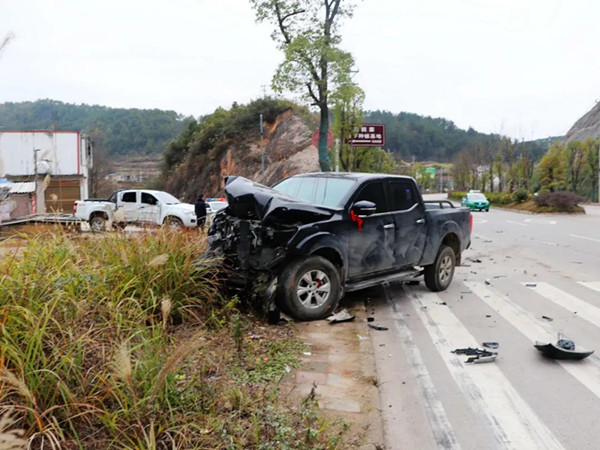 接到報(bào)警后,事故民警立即趕赴現(xiàn)場(chǎng)處置,到達(dá)現(xiàn)場(chǎng)時(shí),發(fā)現(xiàn)兩輛皮卡車停在路邊,地上散落許多車輛碎片,白色皮卡車旁有明顯血跡,傷者已被送往醫(yī)。