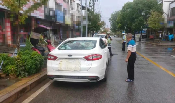 2021年8月25日下午2時31分,凱里經濟開發區交警大隊民警在鴨塘鎮果園場新街路段巡查時,發現一輛白色小車后車牌被毛巾遮擋。