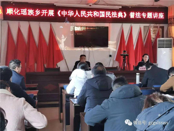 1月28日下午,任明勝、趙媛媛律師應邀在黎平縣順化瑤族鄉黨政辦會議室舉辦了《民法典》專題講座。趙媛媛律師為黨政干部講述了編撰《民法典》對推進全面依法治國、發展社會主義市場經濟、依法維護人民權益、推進國家治理和治理能力現代化的重大意義,以實踐中鮮活的案例解析了《民法典》呈現的熱點和亮點,生動解讀了《民法典》的相關規定。此次講座進一步增強了順化鄉黨政干部對《民法典》重要性的認識,黨員干部均表示今后會運用《民法典》、運用法治思維維護人民權益、化解群眾矛盾糾紛、促進鄉村和諧穩定。