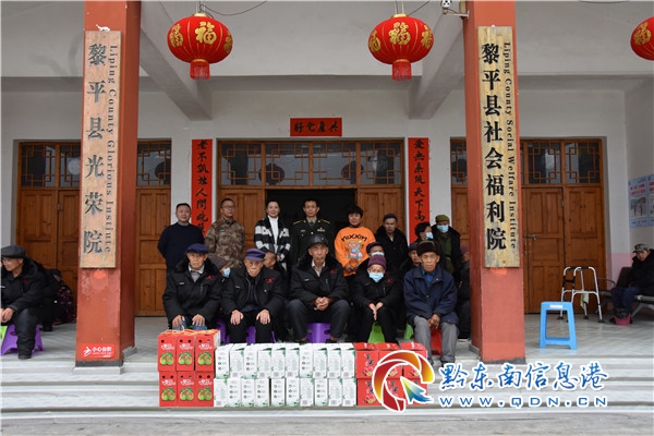 這是2021年2月7日,在新春佳節來臨之際,黎平縣人武部政委李唐林在縣民政局局長姚瓊的陪同下到縣敬老院看望慰問老人的情景。