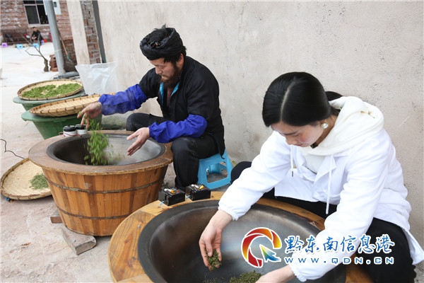 據黎平縣茶葉辦主任吳遠志介紹,春節期間受升溫的助力,黎平縣從今年正月初二開始采茶,到現在采了8天,目前有1000多人采茶,平均每天采摘的茶青有500多公斤左右,8天下來,茶場總的收到了4000多公斤茶青。