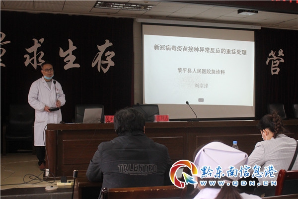 培訓會上,黎平縣疾控中心免疫規劃科吳玉連作了《新冠疫苗接種流程及相關注意事項》的講解、黎平縣人民醫院急診科主任劉宗澤就《新冠病毒疫苗接種異常反應的重癥處理》、黎平縣人民醫院呼吸與重癥醫學科主任李可梅就《新冠疫苗預防接種異常反應與處置》等研判方向,圍繞疫苗接種禁忌和注意事項、接種發生疑似預防接種異常反應和相關突發情況的處理、疫苗接種咨詢、急救相關知識技能、接種異常反應患者轉診/轉院等內容進行集中授課。當天培訓結束后,全體與會人員進行了線上考試,經考試合格者頒發證書,持證上崗。