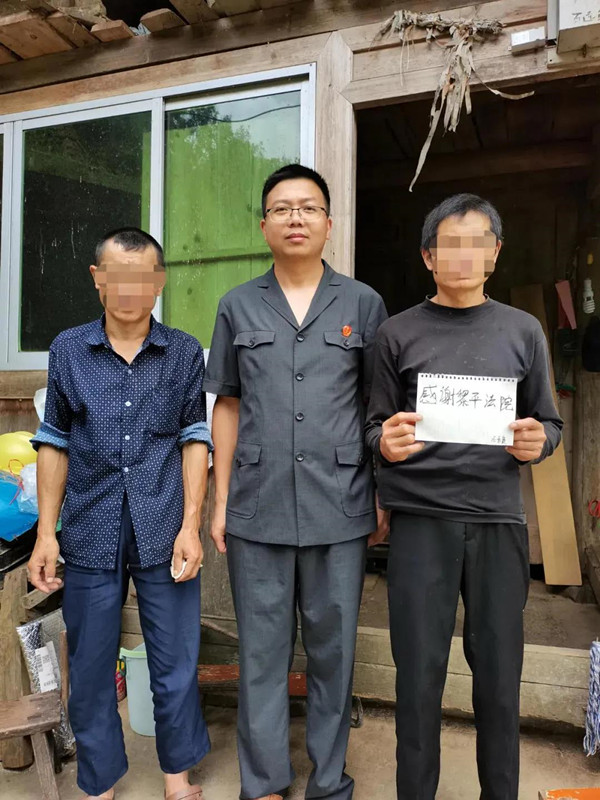 為了表示感謝,他們堅決要給黎平法院法官送上錦旗,承辦法官委婉的拒絕了:“為你們解決困擾,是我們法官義不容辭的責任。”但石某貴還是激動的找出筆和紙寫下“感謝黎平法院”六個字,并與承辦法官合影,以表達謝意。