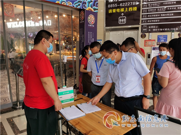 本網訊 近日,黔東南州商務局黨組書記李文書一行深入黎平縣督導檢查商貿流通領域重點場所落實疫情防控措施情況,縣工信和商務局、縣中小企業服務中心相關領導陪同檢查。
