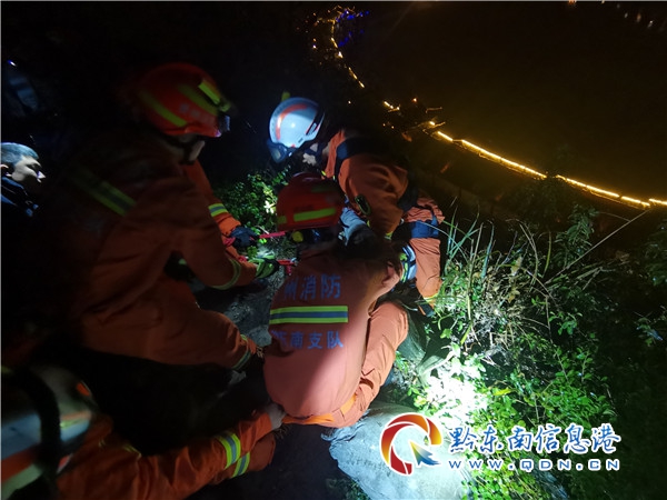 趕到現(xiàn)場(chǎng)后,看到女子跳崖處地勢(shì)陡峭,雜草叢生,加上晚上光線弱,未見女子身影,生死不明。黨員民警李華嘗試向其喊話,得知女子被困在懸崖中間雜草叢中,四面都是懸崖,無路可行。經(jīng)過多次勸導(dǎo),該女子情緒逐漸平穩(wěn)。消防隊(duì)員趕到后,通過共同商議和對(duì)地形熟悉,決定利用救援繩采取繩圈背人形式將人拉上來。由于陰雨天氣,雜草濕滑,為安全起見,黨員民警李華繼續(xù)耐心對(duì)女子進(jìn)行勸導(dǎo),經(jīng)過一個(gè)小時(shí)奮力營救,將女子成功救起。