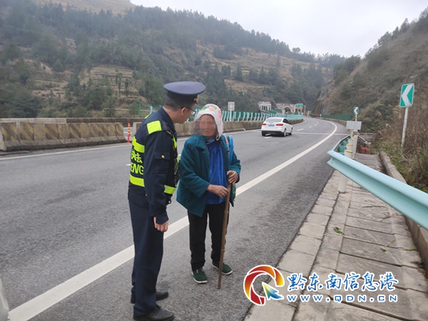 于是,路政員詢問了老人的住處,想要把老人安全送回家。但老人卻說不清家里的詳細地址,只說是在雷山縣城附近。路政員只有先護送老人安全離開高速公路,然后再將老人送到雷山縣丹江鎮(zhèn)派出所,交由當(dāng)?shù)孛窬瘜⒗先怂突丶摇T谧o送老人的路上,路政員不停向老人宣傳了高速公路法律法規(guī),告訴老人高速公路上是嚴(yán)禁行人行走的,為了自身生命財產(chǎn)安全,以后千萬不能再上高速公路上行走,老人也認識到了自己的錯誤。