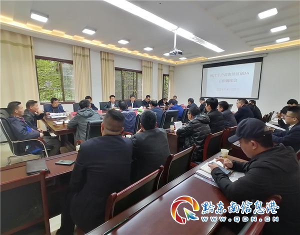 本網訊 2021 年 4月15 日下午,雷山縣委副書記、縣長袁剛率隊到西江景區現場調研并主持召開西江千戶苗寨景區創5A工作調度會。縣委副書記崔華明,副縣長楊召銀,園區(西江鎮)黨政主要領導和創5A辦負責人,西江旅游公司,縣水務局,縣供電局,縣自來水公司,縣住建局,縣消防大隊,縣市場監管局,縣文體廣電旅游局,縣自然資源局,縣工信商務局,縣發改局,縣委宣傳部,移動公司,聯通公司和電信公司主要負責同志陪同。