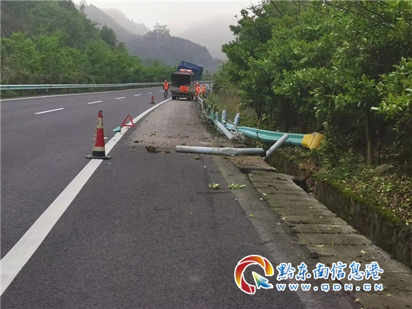 本網(wǎng)訊 4月25日,雷山路政執(zhí)法大隊(duì)路政員接到報(bào)警電話稱在G60滬昆高速K1652+800下行處,有一輛貨車發(fā)生單方交通事故。接到報(bào)警后,路政員立即趕往事故現(xiàn)場。
