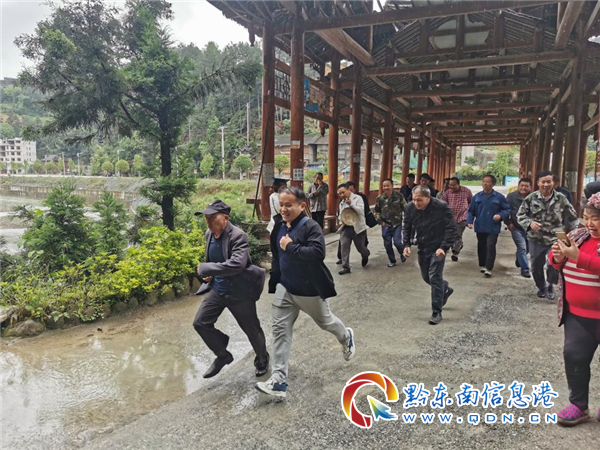 在地質災害隱患點開展現場模擬演練,因持續暴雨極易發生山體滑坡和坍塌,造成民房損毀和倒塌,山洪監測組通過鳴鑼、手持小廣播等方式第一時間向受威脅群眾發布消息,并向鎮政府立即報告災情實情,現場綜合指揮組負責對群眾宣傳地質災害防治知識,讓群眾熟悉報警信號、撤離路線、臨時避讓地點等。