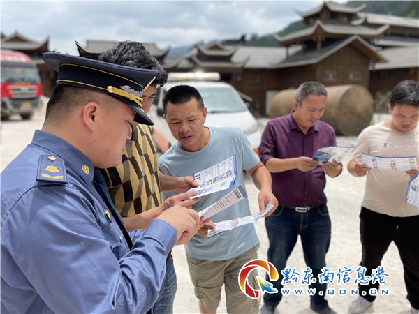 在宣傳活動現(xiàn)場,宣傳員向群眾發(fā)放《拒乘黑車,平安出行》《中華人民共和國公路法》《致廣大乘客和群眾關(guān)于乘坐非法營運(yùn)車輛嚴(yán)重危害性的一封公開信》等宣傳資料和印有《規(guī)范交通執(zhí)法文明行為,服務(wù)群眾安全便捷出行》《貴州省公路條例》《公路安全保護(hù)條例》等宣傳內(nèi)容的手提袋、圍腰、水杯等。并在雷山公路管理段辦公樓設(shè)置路政宣傳標(biāo)語滾動播放將持續(xù)到5月底;在轄區(qū)路段沿線擋墻、加油站、機(jī)化站等顯要位置張貼宣傳橫幅。(張希才 張 榮 吳婧雯 )