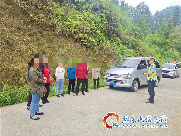 本網訊 5月31日,貴州省雷山縣公安局交警大隊達地分隊執勤民警在農村道路開展交通整治行動時,查獲一起面包車超員載客的交通違法行為,及時消除了道路安全隱患。
