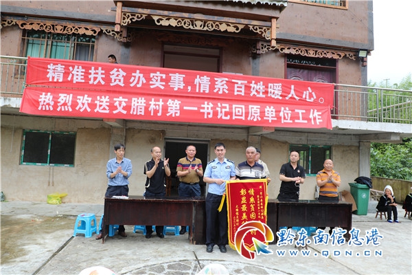 “真心舍不得你走,這幾年村里的變化我們是看在眼里,記在心里。”一名身穿苗族服飾的婦女眼里噙著淚對趙廣說著依依不舍的話。趙廣也緊緊拉著村民的手哽咽著說道:“我駐村工作雖然結束了,但交臘永遠是我的家,我還會常回來看看的……”溫暖的場面訴說著與鄉親們的魚水深情。(楊正道)