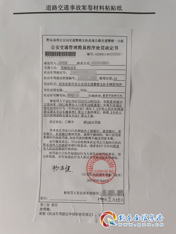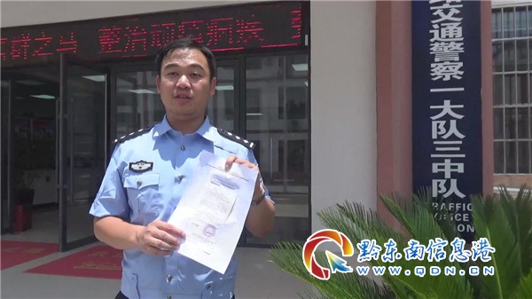 圖為民警楊吉惺留下處罰決定書并自費繳納罰款