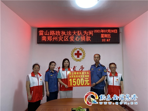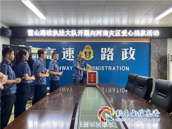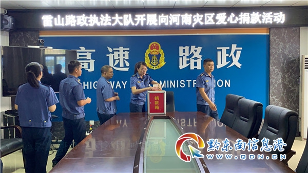本網訊 連日來河南的嚴峻汛情和一線防汛人員的安危,牽動著社會各界的心。7月30日,雷山路政執法大隊組織干部職工向河南災區群眾開展愛心捐款活動,表達對河南人民的關心與支持。