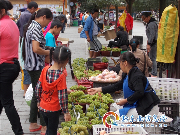 據(jù)了解,截至目前,該鎮(zhèn)已建成科技葡萄基地2000多畝,已全部掛果收益,預(yù)計(jì)每畝收獲鮮果800公斤計(jì),總產(chǎn)量可達(dá)160萬(wàn)公斤,按每公斤8元售價(jià)計(jì),總產(chǎn)值可達(dá)1280萬(wàn)元。圖為游客在縣城果品市場(chǎng)購(gòu)買葡萄的情景。(張希才)