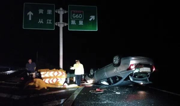 8月14日20時許,凱里高速公路管理處雷山路政執法大隊接到報警,稱S63凱從高速凱雷段K10+000西江互通匝道西江往凱里方向發生一起交通事故,需出警處置。接到電話后,路政員第一時間趕往現場組織救援。