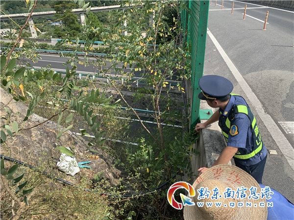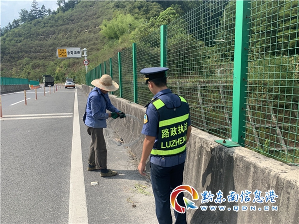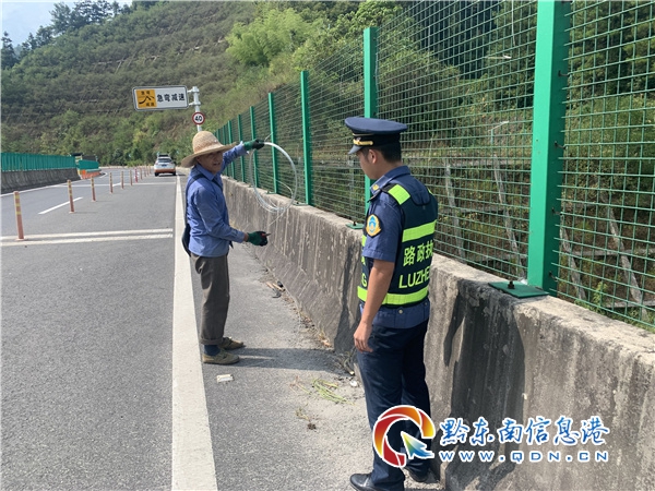 8月19日上午,路政員與當事人取得聯系。村民在電話中向路政員說明自己有急事暫時不能前來來拆除,想請路政員幫他拆除水管。為了確保高速公路安全暢通,下午15時許,雷山路政執法大隊路政員來到現場,對該處違法鋪設管線進行了拆除。