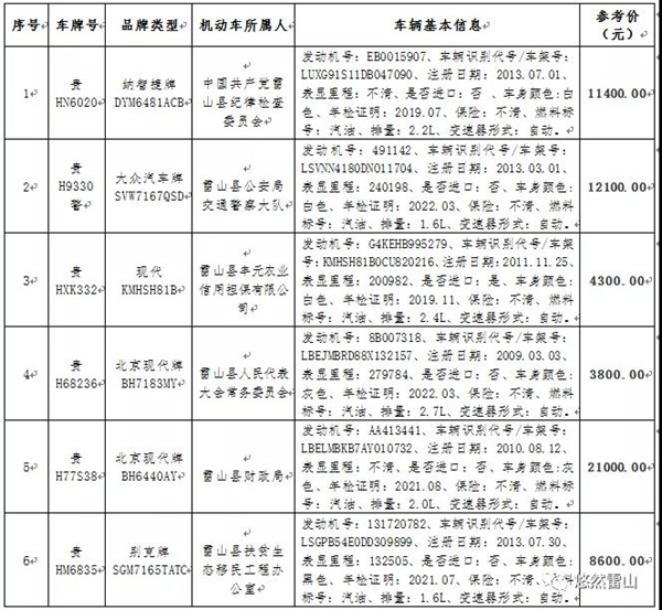 雷山縣最新一批車輛拍賣,即將開始!