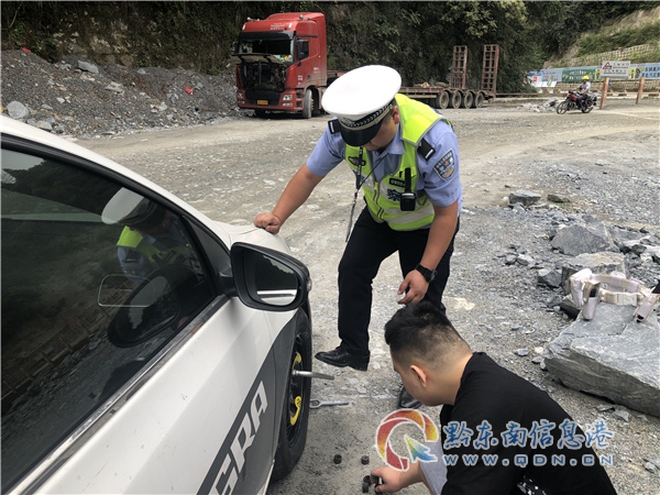 9月8日下午,韋某某帶著家人駕車從貴陽市趕往雷山縣永樂鎮老家,不料途中突遇車輛爆胎。由于不會換胎,人生地不熟的韋某某一籌莫展。