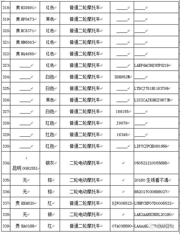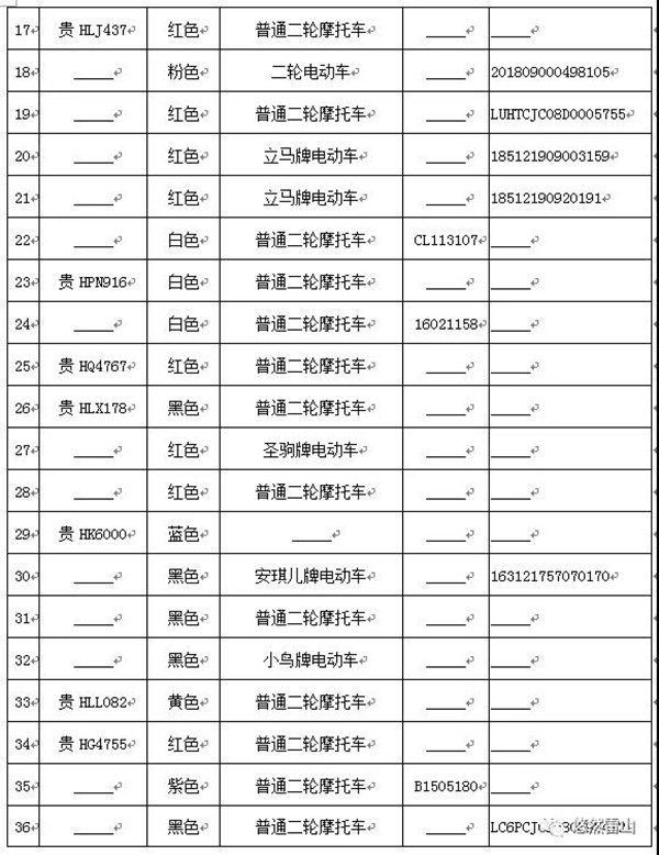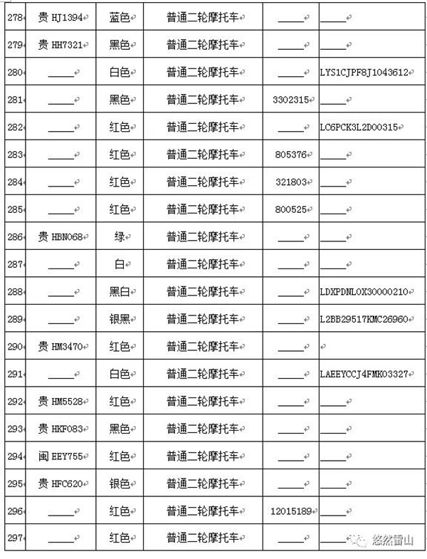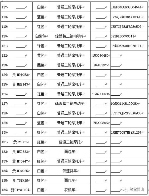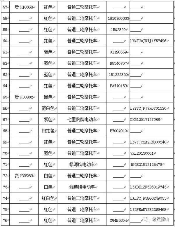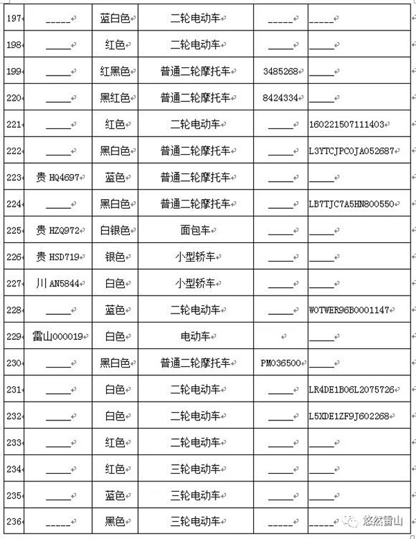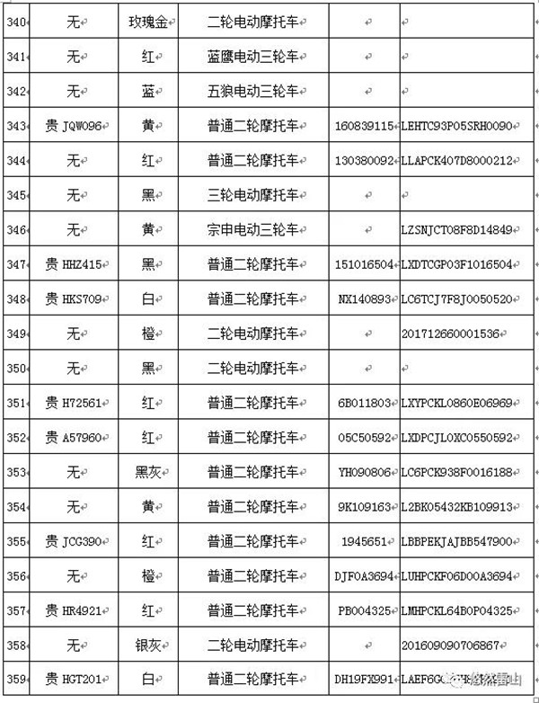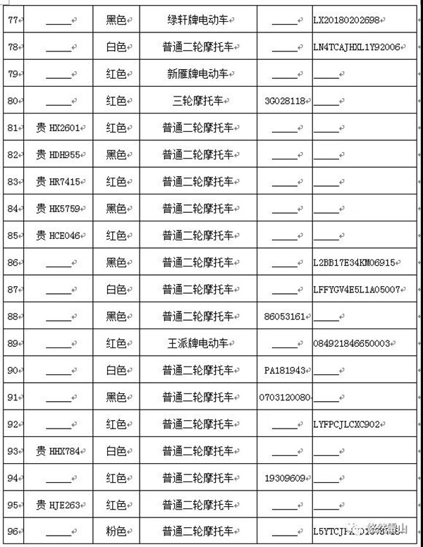 雷山縣公安局交警大隊依法扣留且逾期不來接受處理機動車清單