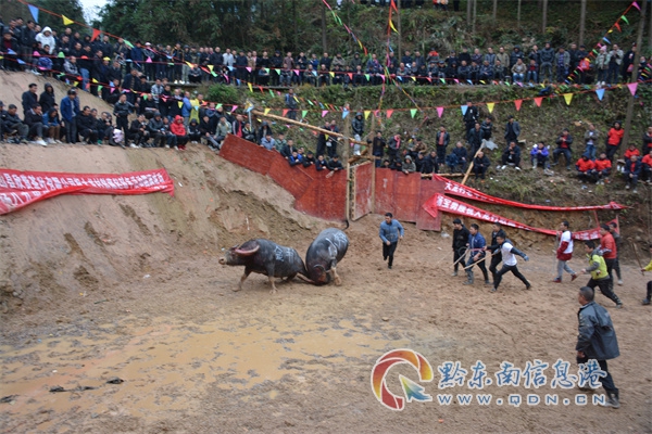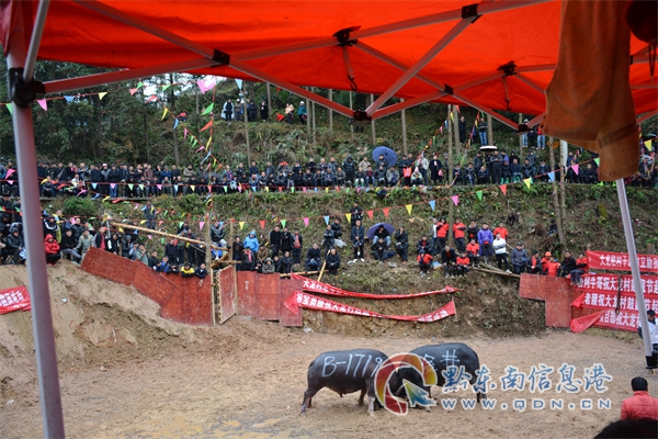 據了解,首次大龍村苗年節斗牛大賽兩天,來自凱里、黃平、雷山等地的28頭斗牛參賽,雖然參賽的斗牛不多,但“牛王”對斗中很精彩,每天吸引了當地上千群眾紛至沓來現場觀戰,陣陣喝彩,為大龍村“鼓藏節”起鼓年活動增添了濃濃的異彩。(張希才)