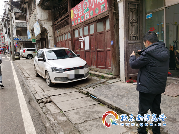 執法隊以文明勸導為主,先后在長征東路、十字街、客車站、酒廠半坡等鎮區主干道。通過路過提醒的方式,告知車主該路段已經取締停車線,停車請到非機動車專用停車位,和規劃好的停車場,說明了亂停放的危害及相關法律和處罰規定;若車主不聽勸導執意違停,執法隊工作人員拿出相機現場拍照取證,并上報至凱里交警等平臺進行舉報。