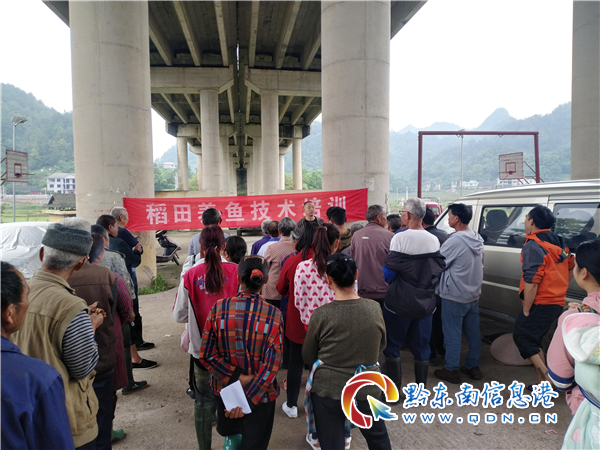 本網訊 近日,碧波鎮組織召開稻田養魚技術培訓會,凱里市農業農村局水產站一行3人到會授課,碧波鎮五寨村40余名稻田養魚示范戶積極參加稻田養魚技術培訓會。