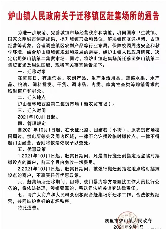 注意!凱里這地關于遷移鎮區趕集場所的通告!不要跑偏了!