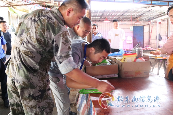 聯合檢查組重點對市場內環境衛生、合法經營、食品安全、消防安全及車輛違停等方面進行全面檢查,共檢查商戶146家,發現部分經營食品的門店沒有相關許可證和健康證明,少數商戶無營業執照;同時發現市場個別商鋪存在使用明火等消防隱患。