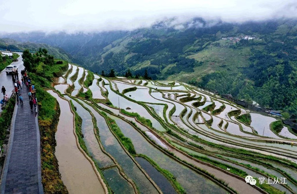 谷雨時節(jié),位于從江縣的加榜梯田蓄水豐盈,色彩斑斕,猶如一幅幅田園水墨畫,吸引眾多游客前來觀光游覽。(吳德軍 攝影報道)