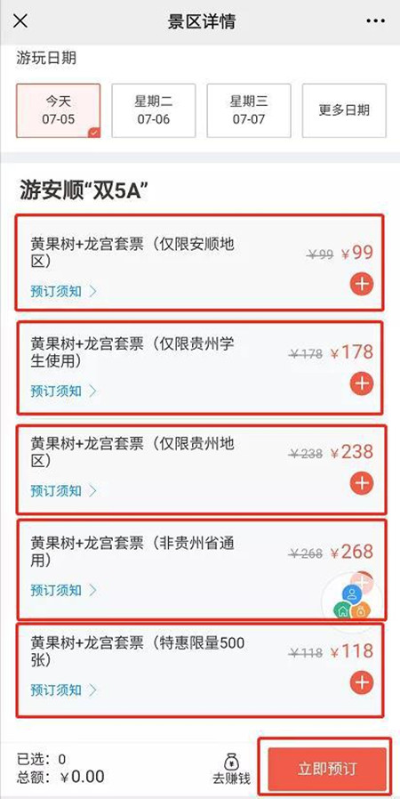 持有安順身份證、戶口本、外地在安居住證(含暫住證)、外地在安就讀學生憑有效證件可購買 " 黃果樹 + 龍宮 " 門票。