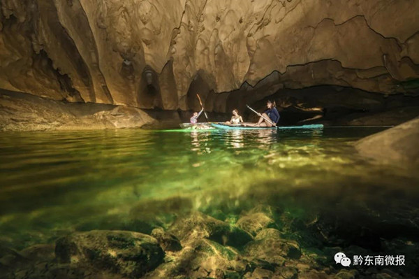 三層洞區域內溶洞星羅棋布數百口,其原始森林茂密,珍稀動植物種類繁多,地形地貌復雜多變,基地策劃有“貴州黔夜,山地大秀”高端體育旅游品牌,開展有叢林徒步、洞穴探險、手劃玻璃船、高空扁擔、溜索等體育旅游項目。